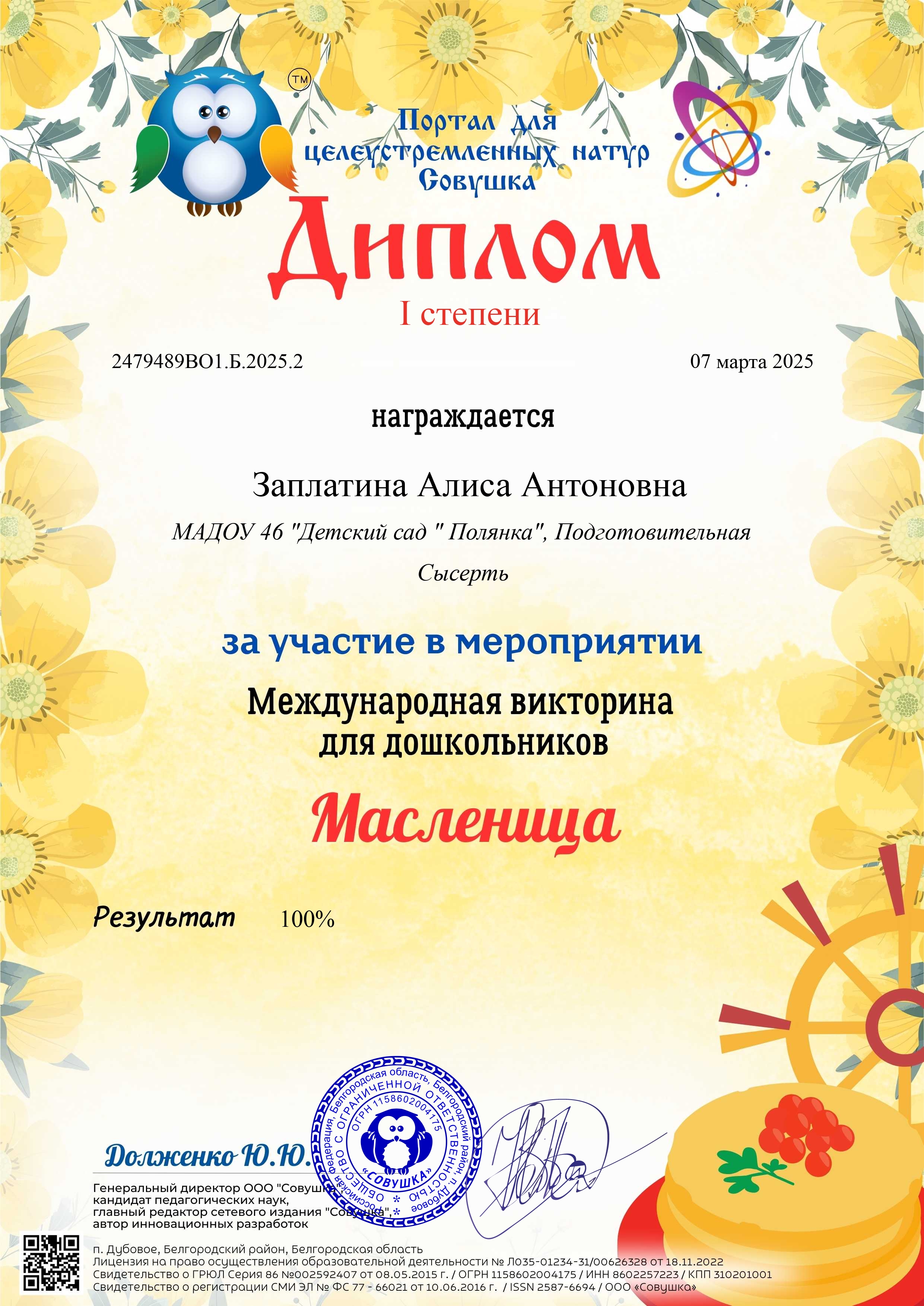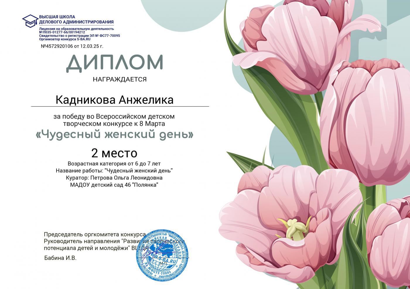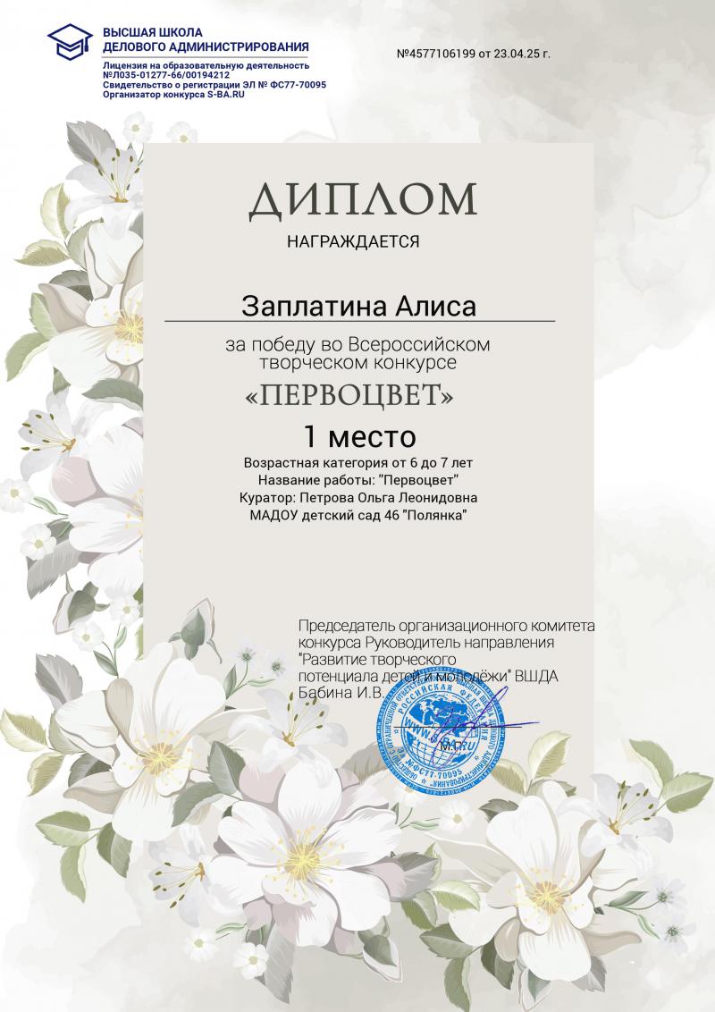Диплом первой степени